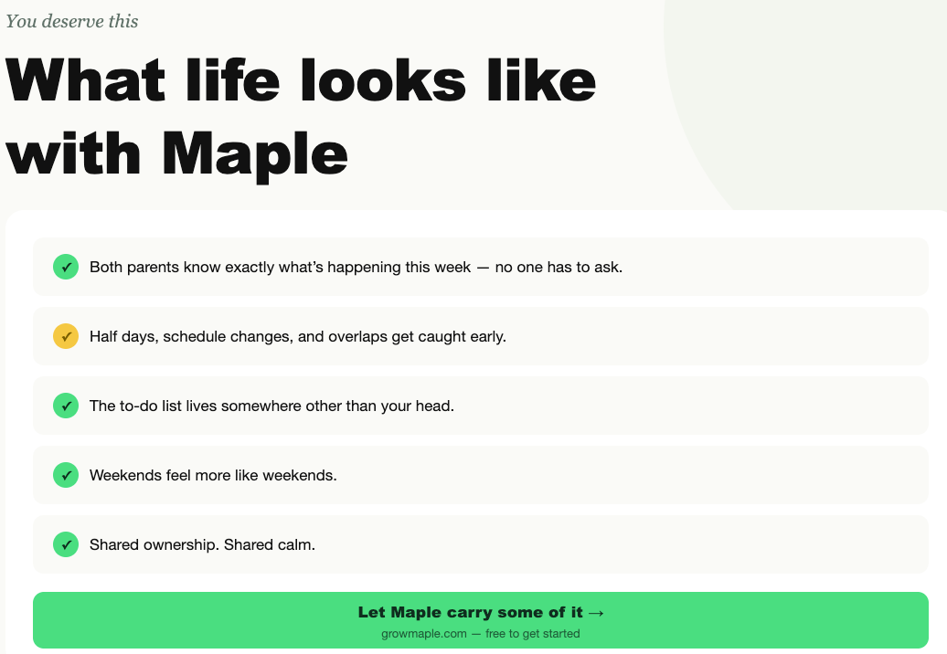 Instead of juggling multiple tools, Maple brings family coordination into one shared system.